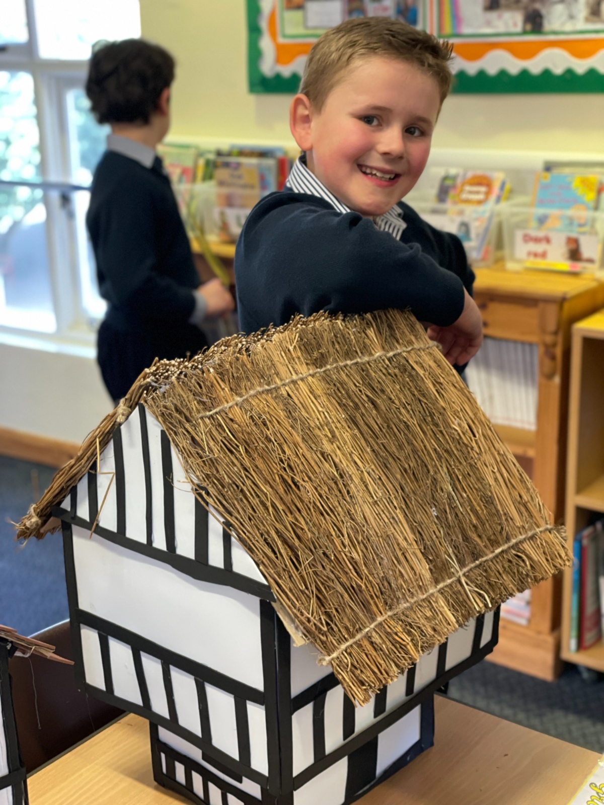 The project was set over half-term, giving pupils time to design, build, and decorate their models at home. The results were truly spectacular—some houses were impressively large, others featured real thatched roofs, and a few even had interiors with miniature furniture, model people, and animals, as well as beautifully manicured gardens!